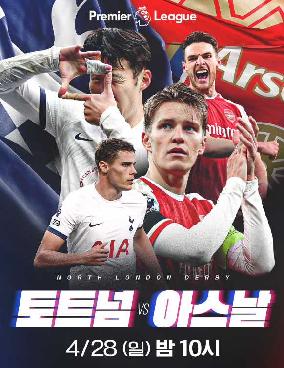 토트넘과 아스널의 북런던 더비는 한국시간 4월 28일(일) 오후10시에 개최되며 스포티비를 통해 생중계됩니다.