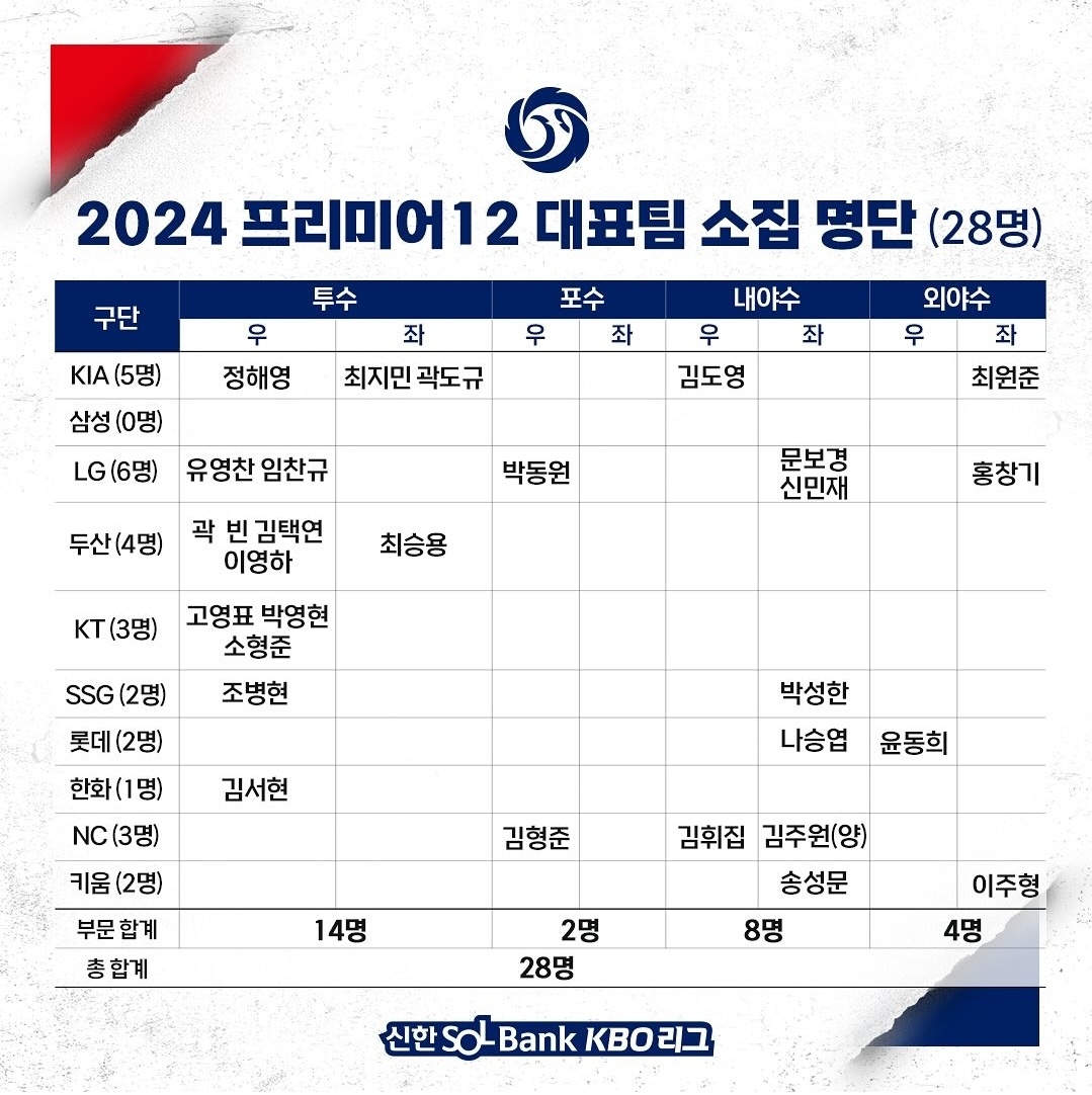 류중일 호는 프리미어 12에 참가할 대한민국 야구 대표팀 명단을 발표했는데요.