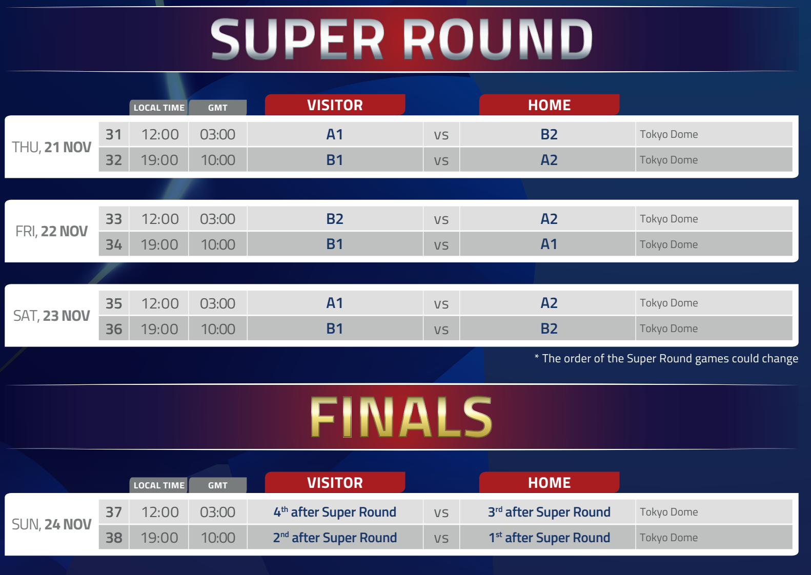 결승전은 11월 24일 모두 도쿄돔에서 개최된다.