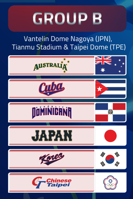 B조는 호주, 쿠바, 도미니카공화국, 일본, 한국, 대만이 속해 있다.