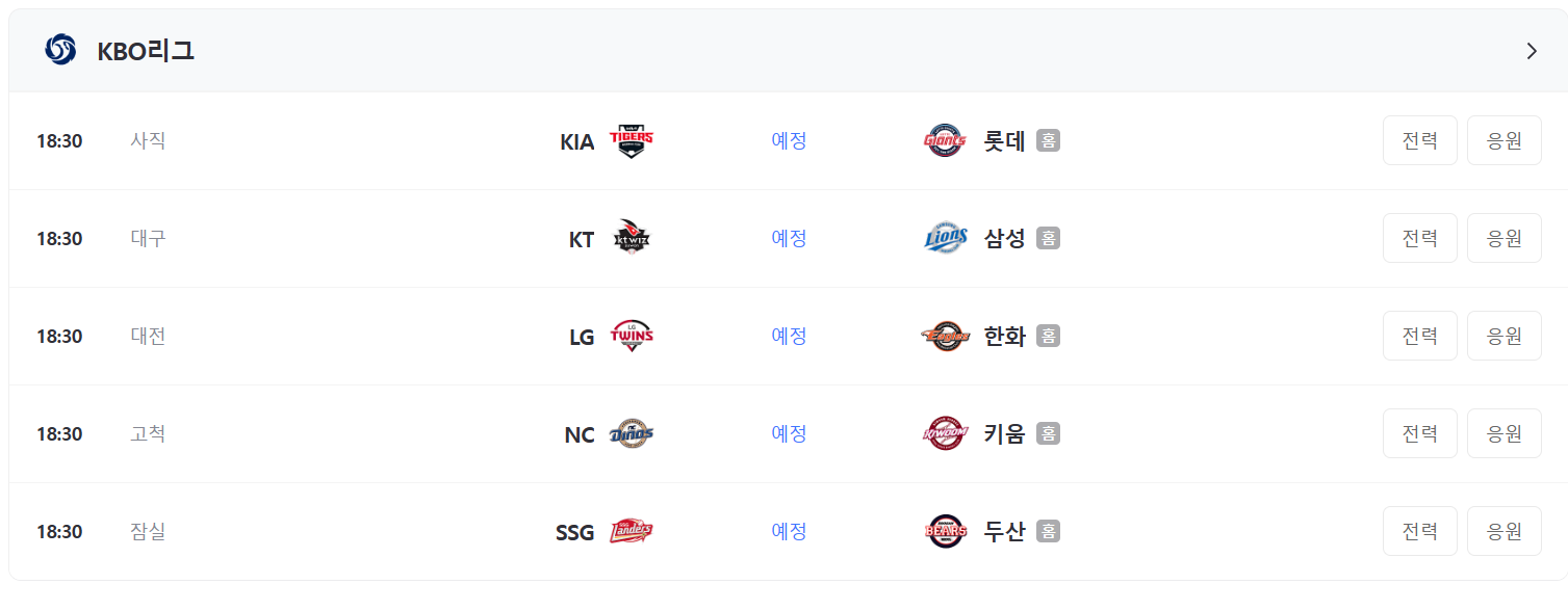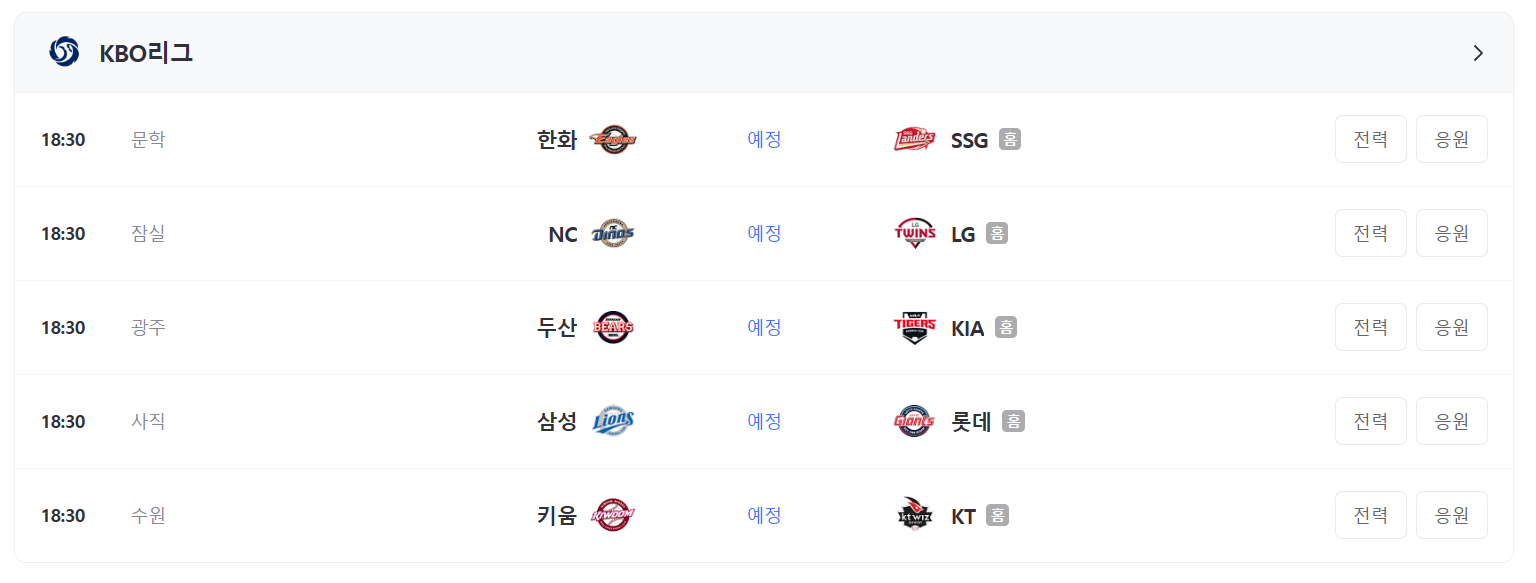 | LG, KT, SSG, 기아, 삼성, 한화 | 티켓링크 |