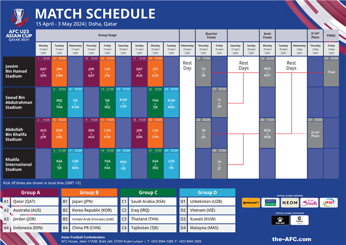 2024 파리 올림픽 축구 예선 AFC U-23이 아시안컵이 개최되었던 카타르에서 4월 15일부터 5월 3일까지 열린다. 작년 11월 아시아축구연맹은 조추첨을 통해 U-23 아시안컵 조편성을 확정했다.