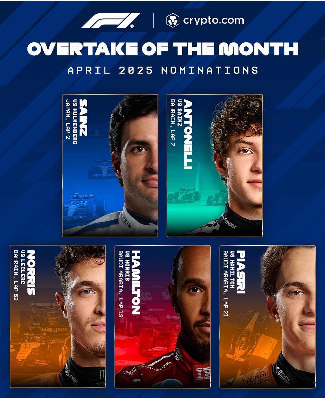 사인츠, 안토넬리,노리스, 해밀턴, 피아스트리의