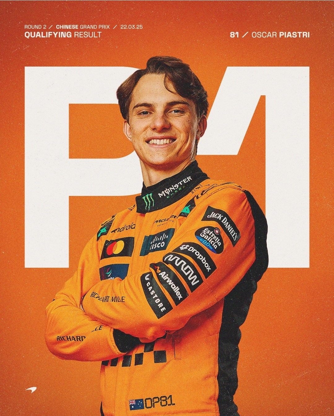 맥라렌의 피아스트리가 폴투윈(Pole to win)으로 우승을 차지했고