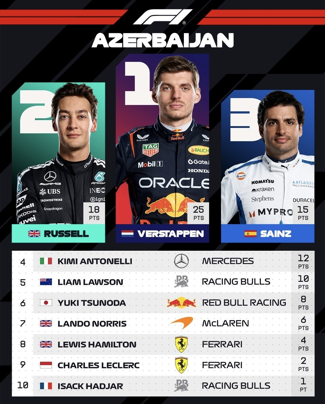 | 2025 F1 싱가폴 그랑프리 결과 : 조지레설 우승🏆 (0) | 2025.10.05 |