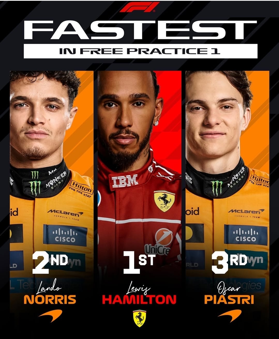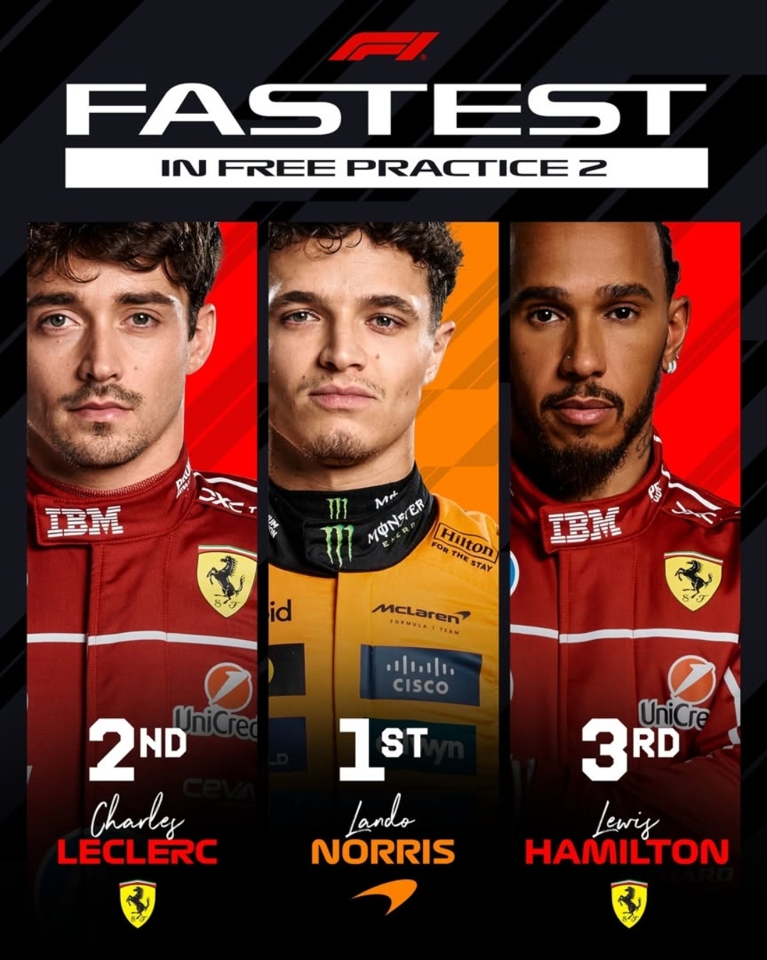 Practice2에서는 르끌레르 2위, 해밀턴 3위