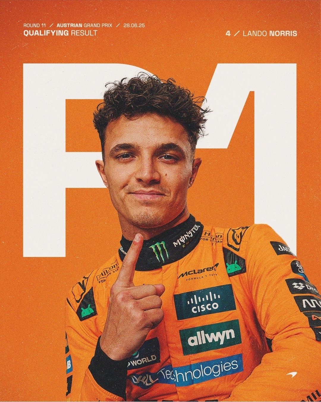 랜도 노리스 올시즌 4번의 폴 포지션에서 모두 우승을 차지하며