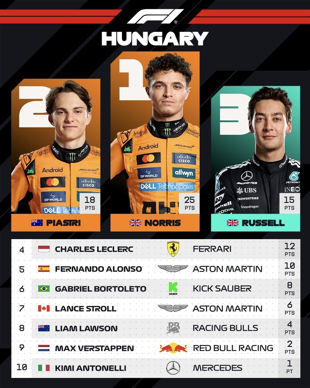 | 2025 F1 네덜란드 결과: 오스카피아스트리 우승🏆 (2) | 2025.09.01 |