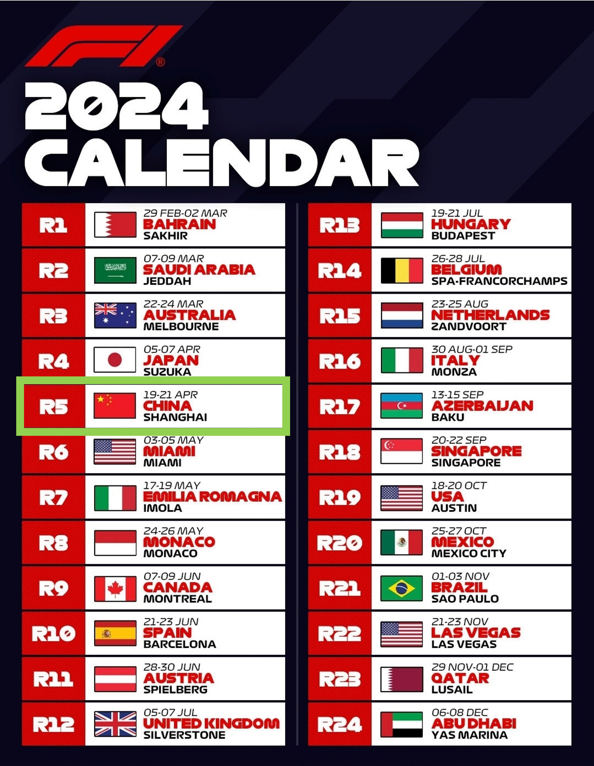 2024년 F1의 5번째 그랑프리가 4월 19일 부터 21일까지 상하이시 자딩구에서 개최됩니다. 이번대회는 4월 5일에서 7일까지 개최된 일본 그랑프리 후 2주만에 개최되는 대회로 많은 아시아 F1팬들의 관심을 끌고 있습니다.